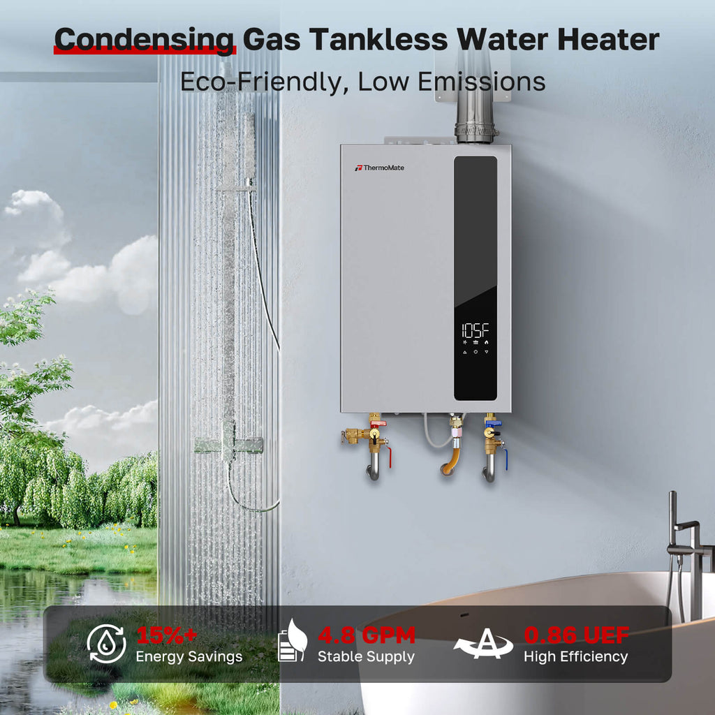 Get Endless Hot Water with Maximum Efficiency – Upgrade to the ThermoMate CZ480NG Condensing Tankless Water Heater and enjoy unlimited, on-demand hot water for your home. With a 5.28 GPM flow rate and 114,000 BTU output, this advanced system delivers hot water to 3–4 fixtures simultaneously – perfect for busy households. Say goodbye to cold water shocks and waiting for the tank to refill.